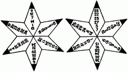 Секрет фокуса: В первый раз зритель сказал, что его число на втором луче. А на другой стороне звезды весь второй луч переписан по кругу — второму от центра. Когда зритель сказал, что с другой стороны его число на третьем луче, вам осталось лишь посмотреть на этом луче второе число от центра и назвать его.