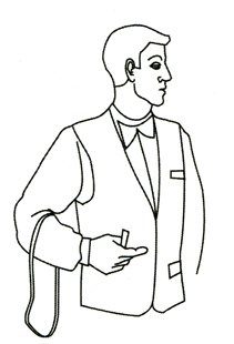 После этого предложите желающим из зрителей снять веревочное кольцо с руки, не убирая большого пальца участника фокуса из кармана. Вряд ли у кого это получится. Тогда за дело возьмитесь вы сами. Протащите веревочное кольцо в жилетное отверстие для рукава, перебросьте через голову зрителя, вытащите его через второе отверстие для рукава и перенесите под вторую руку. В результате веревочное кольцо, окружая собой грудь, окажется под жилетом. Отпускайте кольцо, пока оно не покажется из-под жилета, а затем дайте ему упасть на пол.