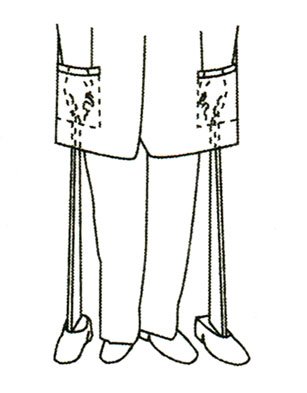 В карманах пиджака сделаны сквозные отверстия, через которые вы держите ноги-палки. Руками, находящимися в карманах, вы и управляете этими лишними ногами.