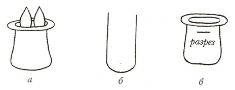 Стоит после команды «Стоять!» пальцем нажать на проволоку, как концы окажутся внутри и проволока, разогнувшись, резко поднимет оба платка вверх (рис.). Те платки, которые вначале были брошены в цилиндр, так и останутся лежать внутри головного убора.
