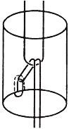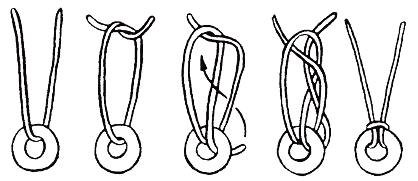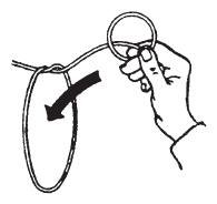 Держа концы веревки обеими руками, вбросьте кольцо в петлю (или протащите по стрелке). В тот момент, когда кольцо войдет в петлю, затяните веревку, и кольцо окажется завязанным в ее центре.
