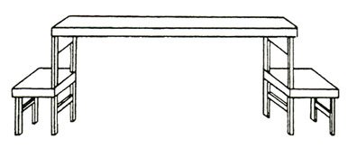 Вынося доску на сцену, нужно прикрывать рукой стержень от глаз зрителей. Стулья нужно выносить легко, а доску, наоборот, — как достаточно тяжелую. Когда доска будет ложиться на спинки стульев, один из ассистентов должен быстро и незаметно вставить стержень доски в углубление стула.