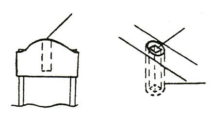Второй секрет — в одном из стульев. В его спинке делается цилиндрический паз, в который вставляется гладкий металлический цилиндр, имеющий с верхнего края углубление длиной 4 см . Кроме того, в передних ножках и в сиденье стула должен находиться груз, который выполняет функцию противовеса.