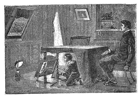 Покройте теперь картонку копотью, держа ее над свечой, поставьте прибор на стол и попросите лицо, пульс которого вы собираетесь записать, приложить руку тем местом, где прощупывается пульс, к пуговице аппарата. При каждом биении пульса, пуговка опускается и вновь приподнимается на пружине, передавая это движение рычагу.