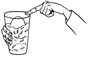 Для этого нужно держать стакан, как показано на рисунке, и постучать по ободку.