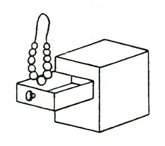Покажите зрителям небольшую деревянную коробку с выдвижным ящиком. Вытащите ящик и передайте зрителям для осмотра. Снимите с шеи ассистентки бусы, положите их в ящик, потом вставьте его в коробку. И тут же снова выдвиньте. Все увидят, что он пуст (рис. а).