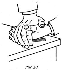 Попросите его положить тыльную сторону его левой руки на карты и крепко надавить ее правой рукой. Для того чтобы он лучше понял то, что нужно делать, поместите ваши собственные руки, как сказано выше (рис. 30).