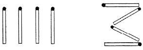 Выложите на столе в ряд четыре спички. Затем попросите зрителя, не убирая ни одной спички, сделать так, чтобы осталось три спички.