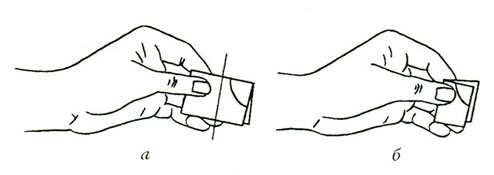 Правой рукой возьмите блокнот и прижмите спрятанный клочок большим пальцем к листку, обращенному к вам. Перехватите блокнот левой рукой и под прикрытием блокнота разверните бумажку с надписью (рис. 6).