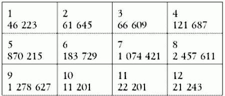 Получаем число на таблице с порядковым номером 2: 61 645. Числа на таблицах 10, 11, 12 составляются по той же системе, но ключевая тройка перед номером не приписывается.