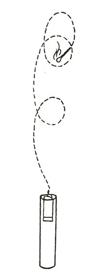 Секрет фокуса. Соприкосновение с горящей спичкой необходимо лишь для того, чтобы создать впечатление, что вы зажгли свечу именно таким образом. На самом деле в момент соприкосновения спички и свечи вы всего лишь зажгли зажигалку, вмонтированную в полый корпус свечи, с пламенем, видимым снаружи (рис.).