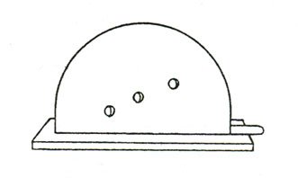 В подставке укреплены два небольших овальных фанерных щита с тремя сквозными отверстиями, между которыми вверх-вниз скользит остро наточенный нож (рис.).