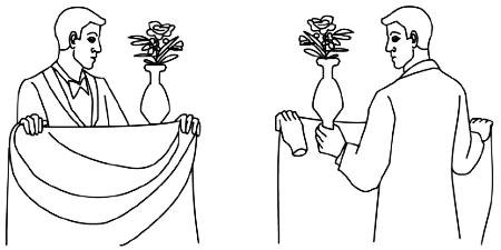 Поставьте на столик вазу с цветами. Возьмите в руки платок, поднимите его за два угла перед вазой, закрыв ее от зрителей. Ваза с цветами станет медленно подниматься, двигаться вдоль верхнего края платка, затем снова скроется за ним. Потом уберите платок, и зрители увидят, что ваза как стояла, так и стоит на прежнем месте.