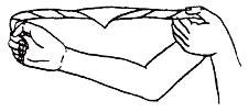 Возьмите платок за противоположные концы указательными и большими пальцами обеих рук и закрутите платок в тугой жгут. Теперь, не выпуская платка из рук, сделайте движение, как будто вы натягиваете тетиву лука. Тяните правую руку вперед, а левую, наоборот, назад, еще больше натягивая «стрелу».