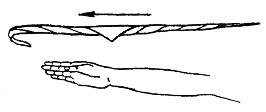 Держа свернутый платок натянутым до предела, слегка отведите обе руки назад, как будто вы прицеливаетесь. А теперь — самый ответственный момент. Отпустите конец платка, находящийся в левой (оттянутой) руке, на долю секунды раньше, чем это сделает правая рука. Кроме того, правой рукой придайте «стреле» нужное направление. Если вы все сделаете правильно и в нужном темпе, «стрела» полетит в цель.