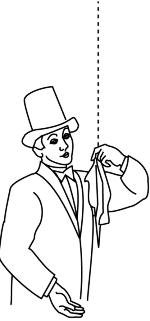 Подбросьте несколько раз вверх обыкновенный шелковый платок. Затем левой рукой возьмитесь за его верхний угол, а правой рукой — за нижний угол. Теперь отнимите левую руку. Зрители удивляются: платок стоит у вас на правой руке. Через несколько секунд уберите и правую руку. Платок повиснет в воздухе!