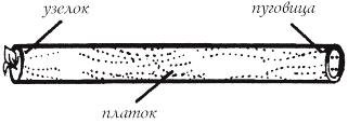 Секрет фокуса. Возьмите полметра бельевой круглой веревки и пестрый шелковый платок из легкой ткани размером 30 30 см. Внутреннюю часть веревки из толстых нитей следует извлечь и использовать только ее чехол. К одному из углов платка пришивается пуговица.