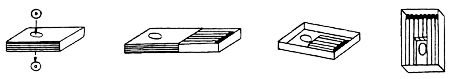 Кроме двух отверстий (одно под другим) в верхней и нижней гранях футляра спичечного коробка, имеется также отверстие в дне ящичка, которое, если его задвинуть в футляр, совпадает по вертикали с положениями отверстий в гранях футляра.