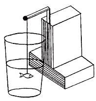 Надломите спичку вблизи конца, зажмите короткий конец спички в спичечный коробок, поставленный вертикально. К длинному концу спички привяжите нитку, на конец которой прикрепите сделанную из бумаги рыбку. После этого опустите нитку в воду.