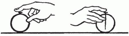 Покажите зрителям обычную монету, зажатую между кончиками большого и указательного пальцев правой руки. Поднесите монету к столу и поставьте ребром на его поверхность. Разожмите пальцы — монета останется стоять на ребре.