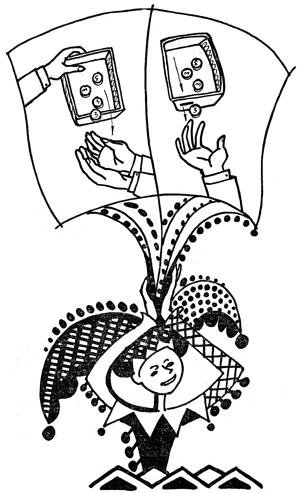 Когда зритель, пересчитав монеты, положит их на поднос, вы снова высыпьте их ему в ладони, не закрывая секретного отверстия. Таким образом, в ладонях зрителя окажется уже восемь монет. Пока удивленный зритель будет выражать недоумение по поводу происшедшего, поверните поднос другой стороной, чтобы в следующий раз высыпать в ладони зрителя еще одну секретную порцию монет через второе отверстие в донышке.