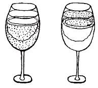 Теперь можно приступать к демонстрации. Налейте в апельсиновую чашечку красного вина. Оно должно пройти сквозь отверстие и заполнить нижнюю часть бокала, дойдя до уровня дна чашечки. Затем бокал до краев наполните водой. Как только это произойдет, струя вина начнет пониматься через одно из отверстий апельсиновой чашечки до уровня воды в бокале, а более тяжелая жидкость — вода — через другое отверстие будет опускаться на его дно. В несколько мгновений вино очутится наверху, а вода — внизу.